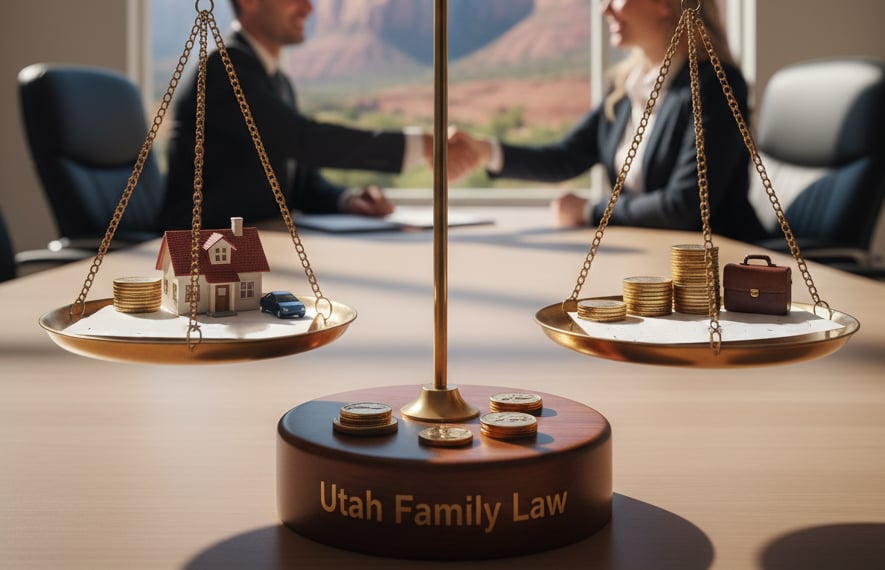 Utah law requires an equitable — but not necessarily equal — division of marital assets. This includes income, real estate, retirement accounts, and personal property acquired during the marriage.